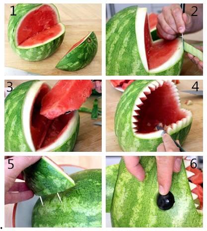 1. 西瓜:用刀在西瓜的中间划一圈,然后沿着划痕切开。这样切出来的西瓜,瓜肉和瓜皮分离,方便食用。